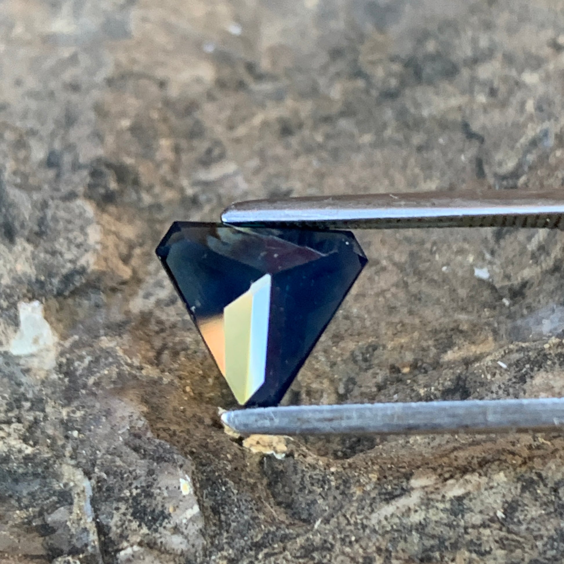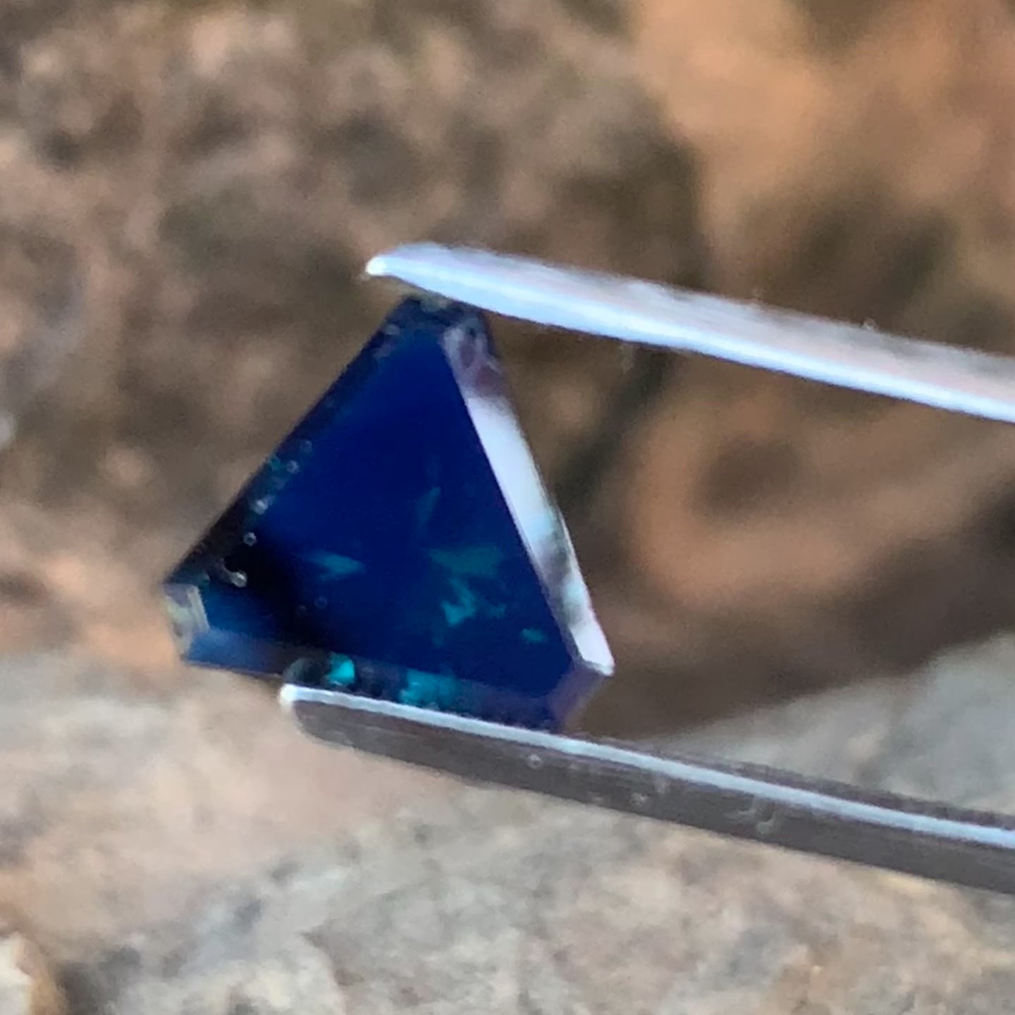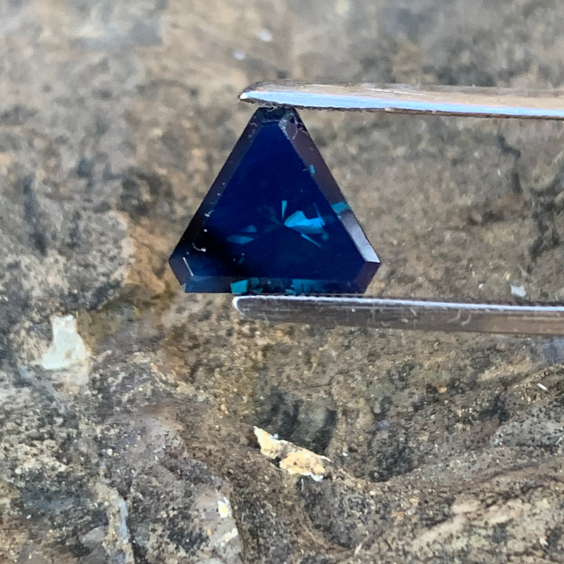 On offer is this beautiful 1.453ct Triangular/kite shape Sapphire (unheated) This stone is cut into a freeform shape, with a primary colour of Blue. Very Silky through the whole stone & has a dark visible inclusions in the top of the stone.