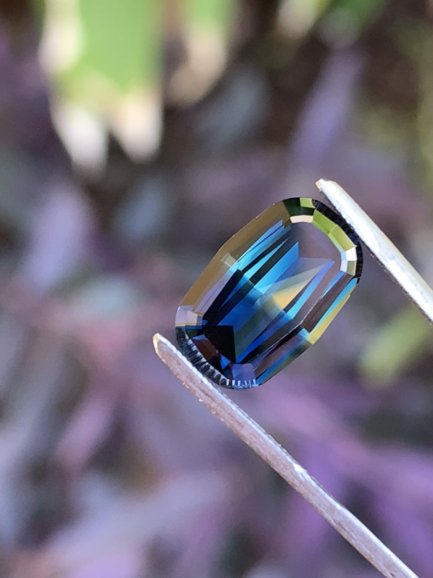 This particular stone is cut into cushion mix cut, with a primary colour of blue, amazing clarity vvs quality